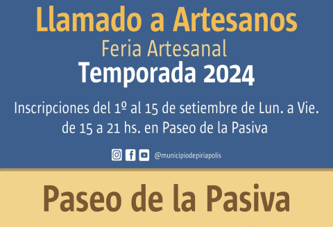 El municipio local llama a artesanos interesados en exponer en la feria del Paseo de La Pasiva, Temporada 2024.