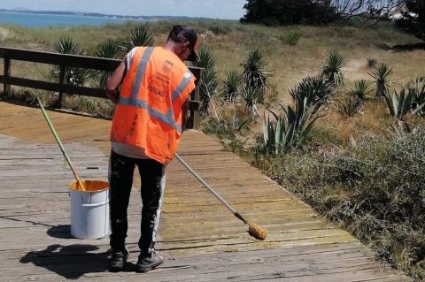Por otro lado, integrantes de “Tu Nuevo Futuro” se encuentran trabajando en tareas de pintura en las pasarelas de la costa de Maldonado.
