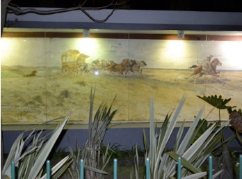 Durante casi 30 años el mural permaneció en dicho lugar, constituyéndose en un punto de atracción cultural del centro de la ciudad. La pintura está referida a la célebre diligencia del mayoral Etanislao Tassano, denominada "La Comercial